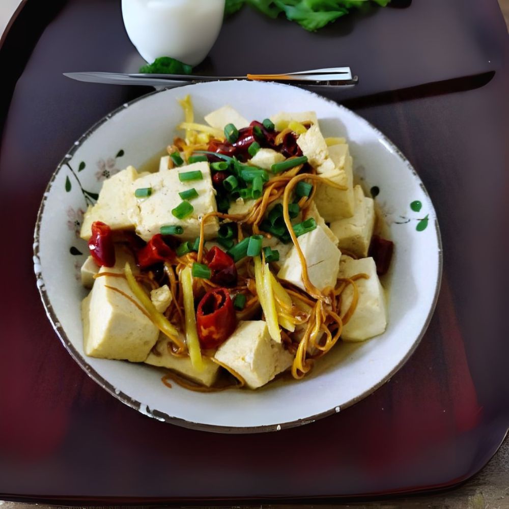 - Đậu phụ cắt miếng vuông vừa ăn, ướp với ½ hành tím băm, ½ sả băm, muối, hạt nêm chay trong 10 phút.