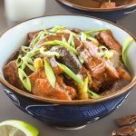 - Lạp xưởng thái lát. Một nửa hành lá thái khúc, phần còn lại thái nhỏ.