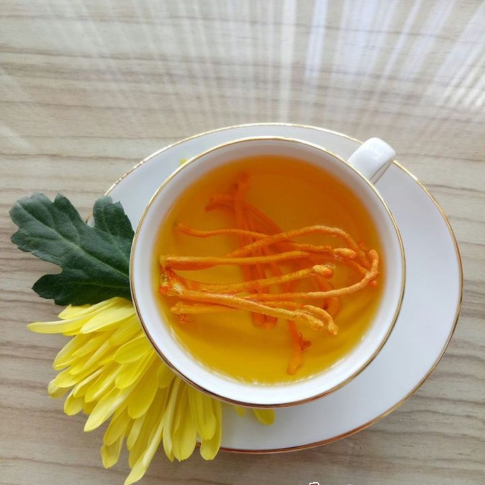 - Sử dụng 2g đến 3g sợi nấm đông trùng hạ thảo cho vào ấm pha trà.