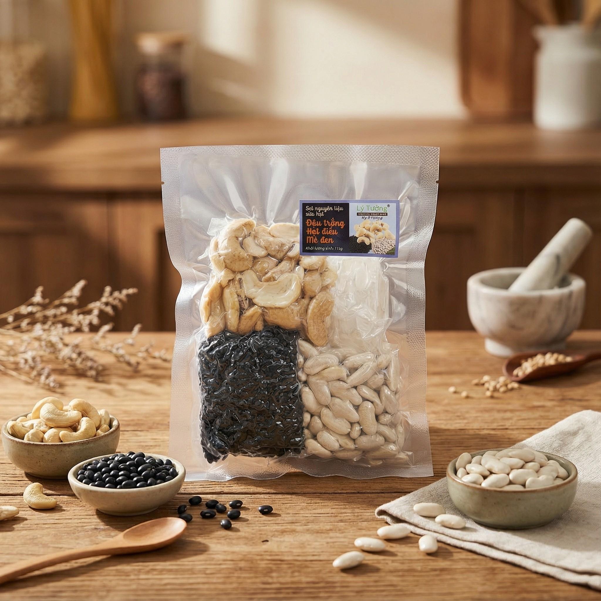 – Set Nguyên Liệu làm Sữa Hạt bao gồm Đậu Trắng, Hạt Điều và Mè Đen là lựa chọn lý tưởng cho những ai yêu thích lối sống lành mạnh và ưa chuộng sự tiện lợi trong việc tự chế biến sữa hạt tại nhà.