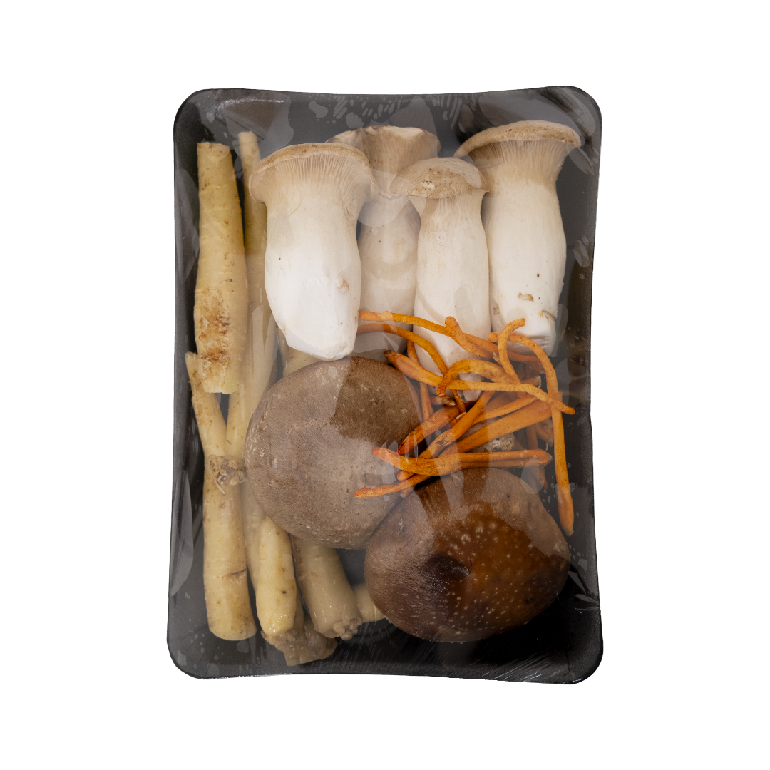 | Thành phần | 36% nấm đùi gà, 32% sâm dây Ngọc Linh, 28% nấm hương tươi, 4% nấm đông trùng hạ thảo tươi. |