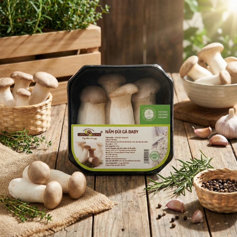 Nấm Đùi Gà Baby hữu cơ – lựa chọn lý tưởng cho bữa ăn gia đình, vừa ngon miệng vừa an toàn, bổ dưỡng, phù hợp với mọi chế độ ăn uống từ ăn chay, ăn kiêng đến thực đơn hàng ngày.