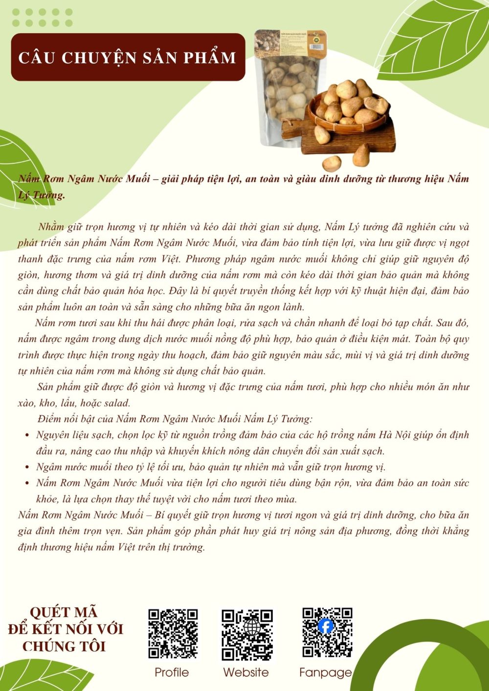 Điểm nổi bật của Nấm Rơm Ngâm Nước Muối Nấm Lý Tưởng: