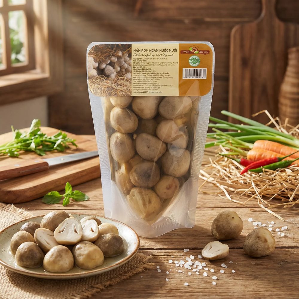 Nấm Rơm Ngâm Nước Muối – Bí quyết giữ trọn hương vị tươi ngon và giá trị dinh dưỡng, cho bữa ăn gia đình thêm trọn vẹn.