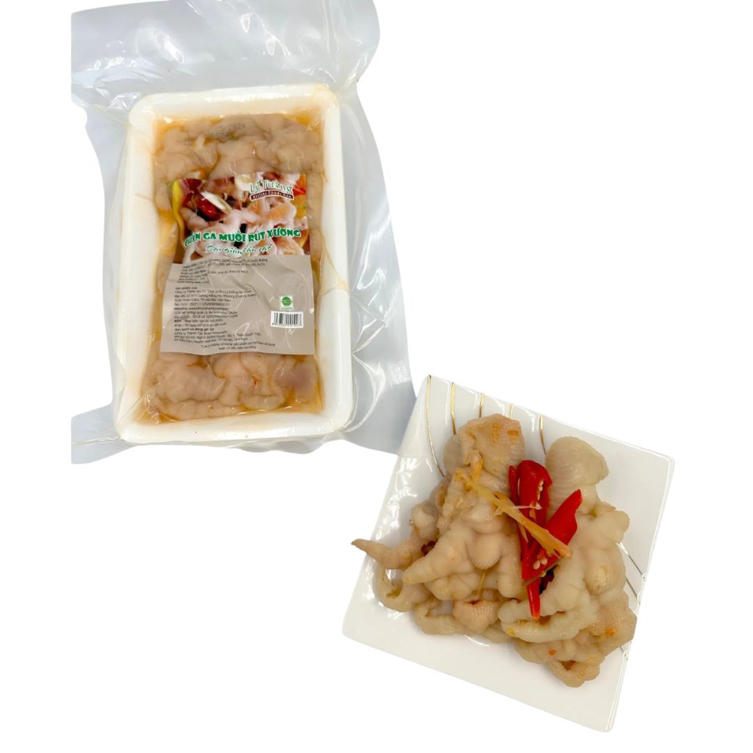 - Chân Gà Muối Rút Xương là món ăn độc đáo, hấp dẫn, được chế biến hoàn toàn từ nguyên liệu sạch, được chọn lọc từ các nguồn cung cấp đạt chuẩn, đảm bảo không chứa chất tăng trọng hay hóa chất độc hại. Mỗi chiếc chân gà đều được xử lý kỹ lưỡng, rút xương thủ công để giữ nguyên độ giòn và vị ngon tự nhiên.
