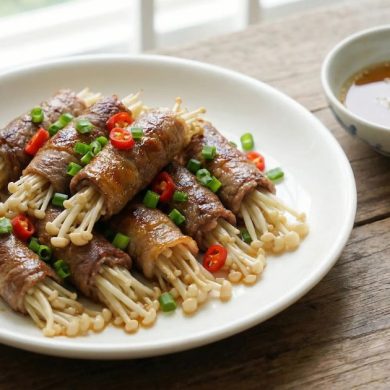 Thịt Bò Cuộn Nấm Kim Châm Áp Chảo