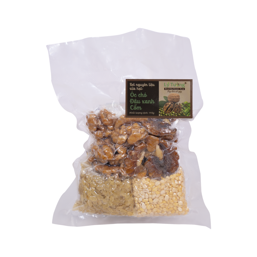 Set Nguyên Liệu Sữa Hạt: Óc Chó – Đậu Xanh – Cốm 115g